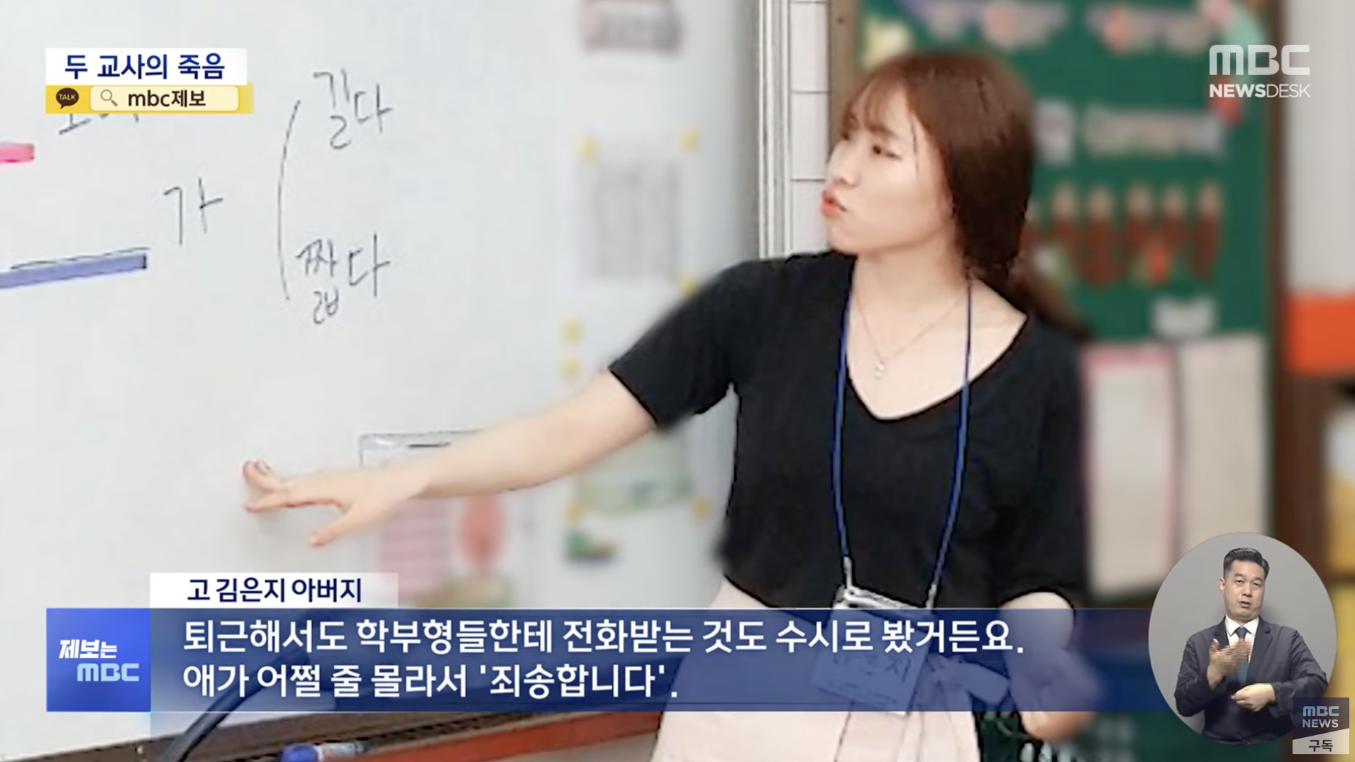 김은지 교사 아버지 : "퇴근해서도 학부형들한테 전화받는 것도 수시로 봤거든요. 애가 어쩔 줄 몰라서 '죄송합니다.' 굉장히 전화받는 걸 두려워했던 것 같아요"