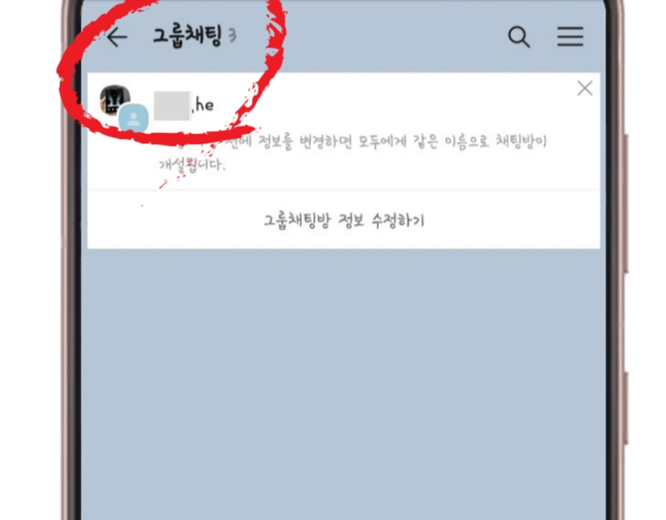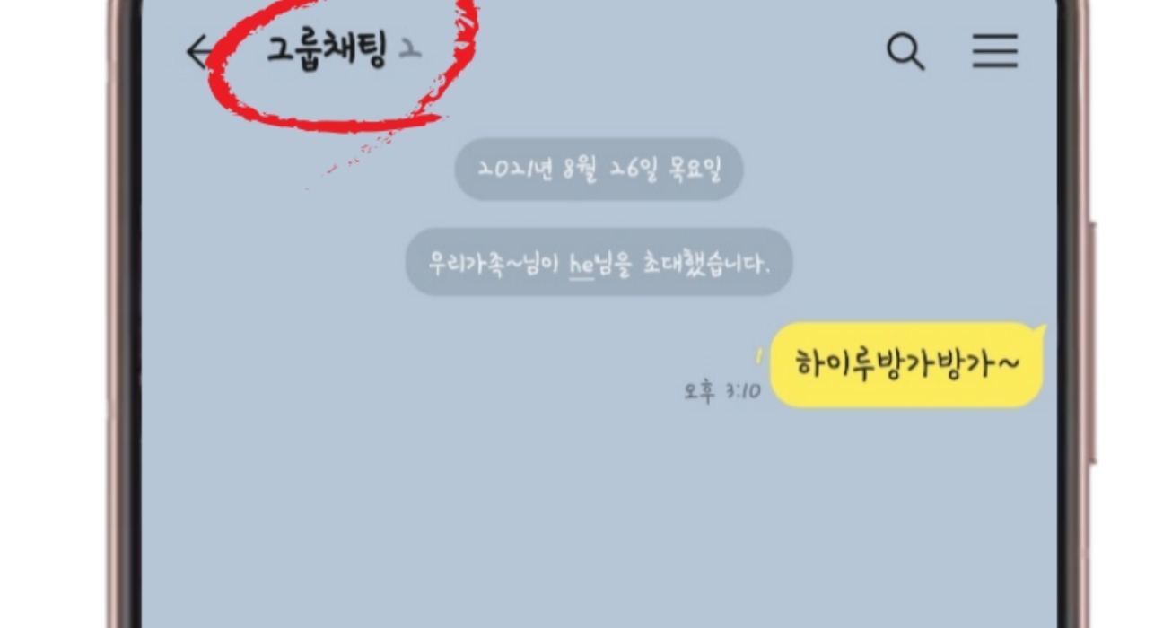 저와 다른 1명이초대되어 있는 대화방으로 대화상대 초대를 터치해서 저를 차단하고 있는 상대방을 초대하게 되면, 채팅방 상단에 상대방까지 초대가 되면서 표시가 그룹채팅3으로 되어있습니다.